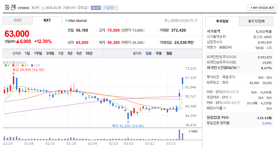 개인적으로는 올해 하반기 안에 꽤 묵직한 규모의 라이선스 계약 공시가 뜨지 않을까 강력하게 예상해 봅니다. 현재 툴젠 주가 전망이 5만 원대 박스권에서 치열하게 숨 고르기를 하고 있다면, 이는 폭발적인 상승을 위한 에너지를 응축하는 과정이 아닐까요?